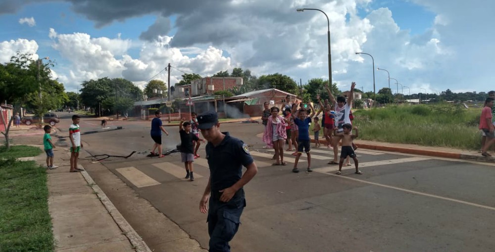 Casi medio centenar de personas (alrededor de 15 adultos y 30 menores, según la Policía provincial) bloquearon este martes por la tarde las inmediaciones de las calles Tulipanes y Alelíes, en el barrio A3-2 de Posadas, donde también protagonizaron una quema de neumáticos,pero de forma pacífica.