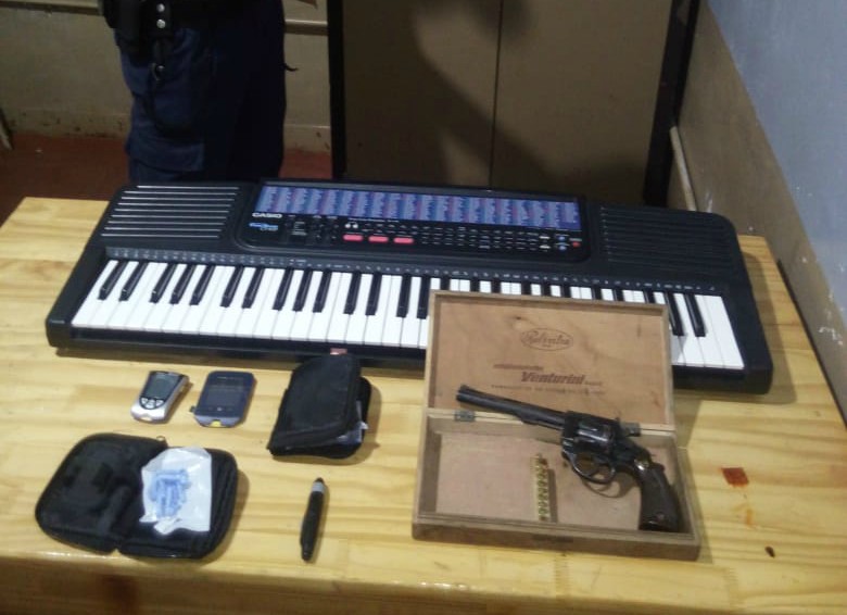 Apersonados en la zona, durante un rastrillaje en el barrio Municipal, los efectivos hallaron ocultos en una zona de abundantes malezas un teclado musical marca CASIO, una pistola marca Bersa calibre 22 y un revólver calibre 22 corto. Estos elementos fueron secuestrados y coinciden con las características de los denunciados como sustraídos el pasado 13 de febrero a Hugo R. (78) de su hogar sito sobre ruta Nacional 14, en circunstancias que se encontraba de viaje.