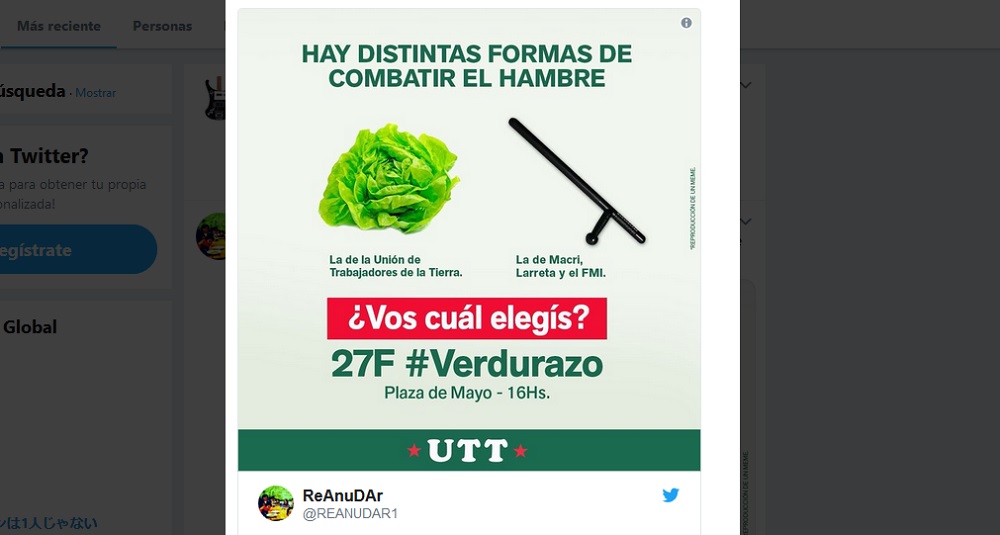 El próximo miércoles 27 estaremos en plaza de mayo apoyando el verdurazo de los compañeros trabajadores de la tierra. pic.twitter.com/XXutoXaPPg