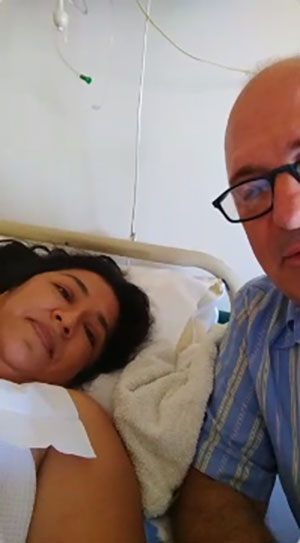 Arriba, su esposa Julia se recuperaba en una de las habitaciones del Hospital Escuela. Abajo, Jorge accedió amablemente a charlar con PRIMERA EDICIÓN para conocer de primera mano el peor momento de sus vidas, pero al que lo superan con la fuerza de la fe.