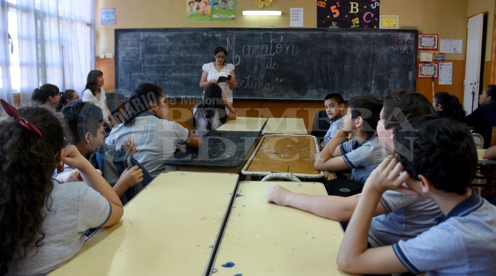 En la Escuela 110, los chicos a plena lectura. (Foto JC Marchak)