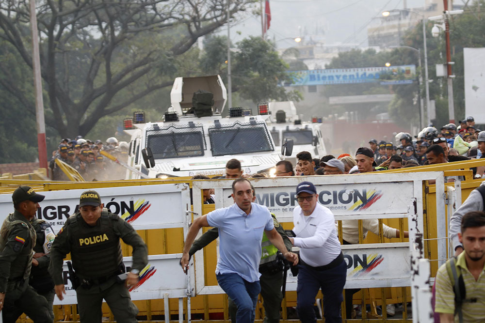 “Esta acción pacífica y de carácter humanitario ha sido interrumpida desde Venezuela bajo el régimen usurpador de Maduro con una represión violenta y desproporcionada”, dijo el canciller Carlos Holmes Trujillo en una declaración a los medios.