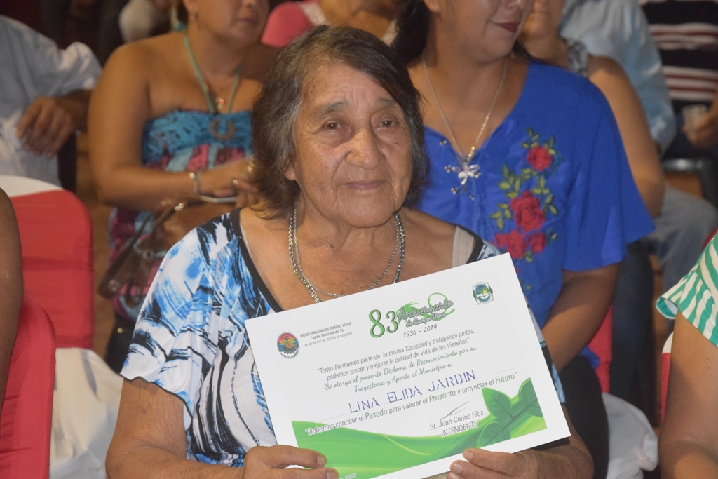 Además, se dirigió a los presentes la vecina Lina Jardín, de 83 años, quien -en nombre de los vecinos más antiguos del municipio- recordó: “Venimos desde muy abajo, con familias humildes que con mucho trabajo y sacrificio sacaron adelante a Campo Viera. Hoy es una ciudad maravillosa y en pleno crecimiento”.