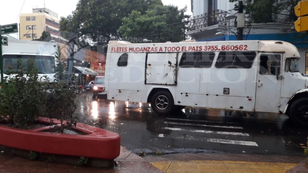 Realizan pequeños bloqueos de tránsito, “cruzando” un colectivo en distintas intersecciones. Así cortaron el tránsito en Bolívar casi Buenos Aires, luego en San Martín y Félix de Azara.