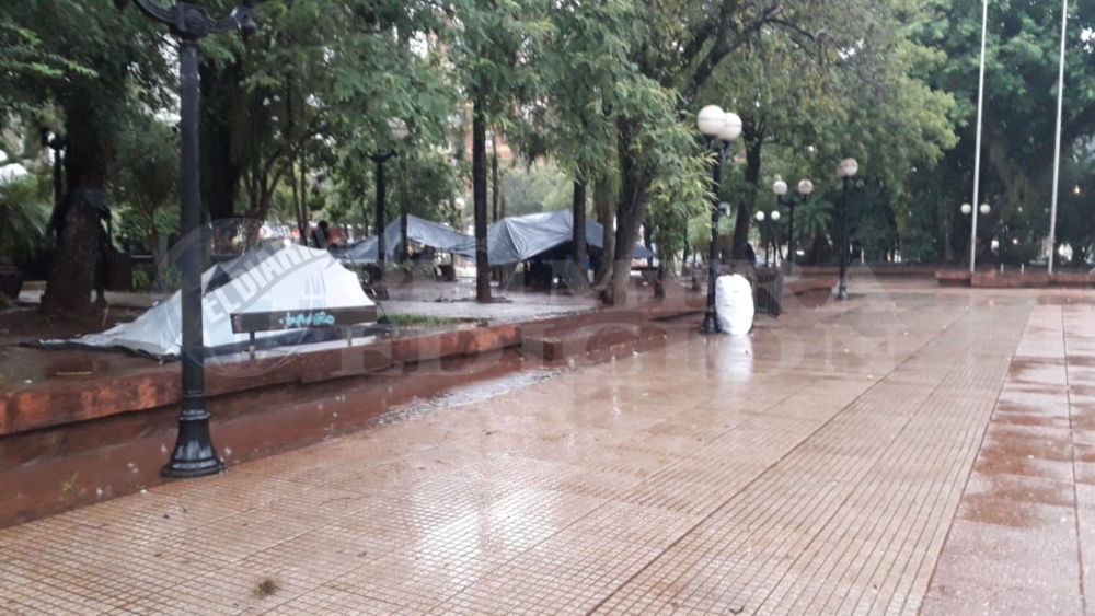 Tareferos integrantes del Movimiento de Tareferos Misioneros (MTM) llegaron desde distintos puntos de la provincia e instalaron sus carpas en la plaza 9 de Julio.