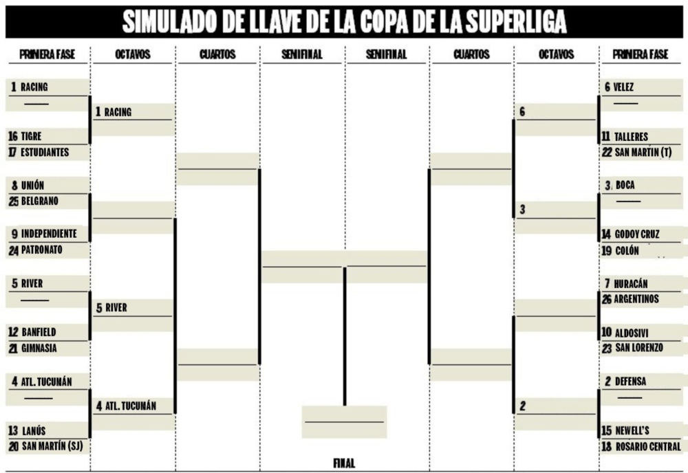 El que haya terminado más alto en la Superliga será local en el desquite. Los diez ganadores se sumarán a octavos. Como la llave está preestablecida, los posibles cruces se podrán ir palpitando fecha a fecha. Octavos, cuartos, y semis también serán a ida y vuelta, con el mismo criterio para definir localías.
