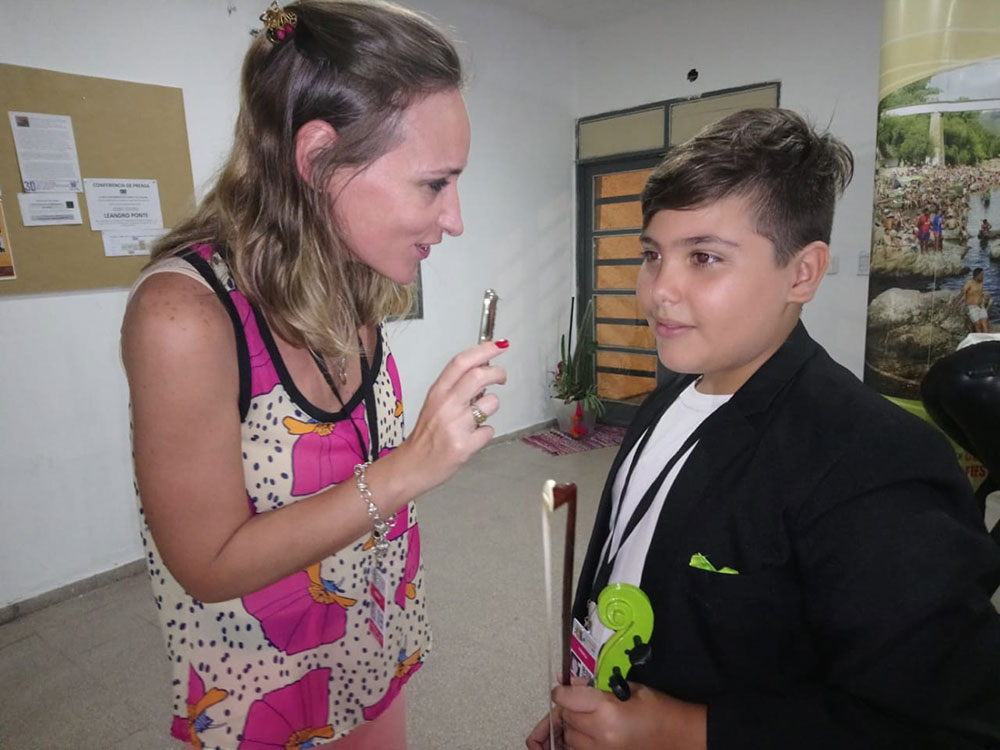 Por su corta edad no pudo estar en el escenario mayor del anfiteatro Próspero Molina. Sin embargo tuvo la oportunidad de acompañar a los artistas misioneros en la peña oficial del circuito callejero.