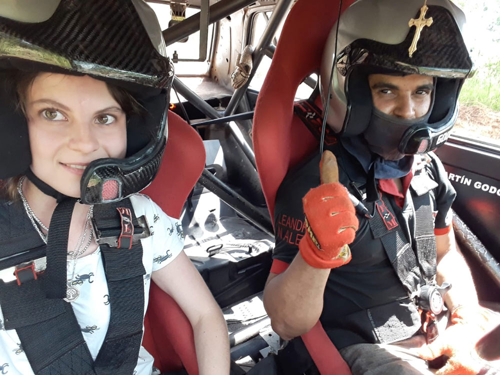 Durante las mañanas -y madrugadas – ayudaba con el auto, por la tarde iba a clases: estudia el profesorado en nivel primario. “Desde que empezamos a salir con Martín le preguntaba cuándo me iba a llevar como navegante”. La respuesta a su pregunta tardó, pero llegó.