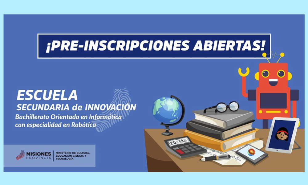 Están abiertas las inscripciones para la Escuela Secundaria de Innovación dirigida a jóvenes de 13 a 15 años (1° y 2° año del nivel medio) a través del enlace guacurari.misiones.gob.ar. Esta oferta académica ofrece un bachillerato orientado en informática con especialidad en robótica.