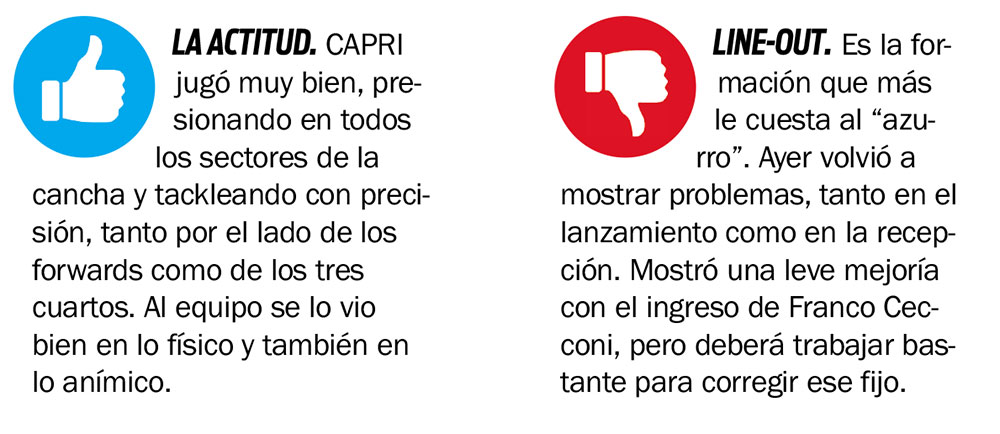 De cara a lo que se viene, CAPRI deberá corregir cosas puntuales, entre ellas el trabajo en el line-out, formación que volvió a costarle bastante ayer.
