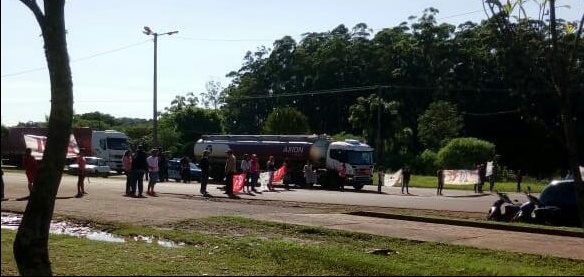 Integrantes del Frente de Organizaciones en Lucha cortan la ruta nacional 14 a la altura del barrio Virgen del Rosario en Alem. La modalidad del corte es cada 45 minutos con liberación del paso cada 10.