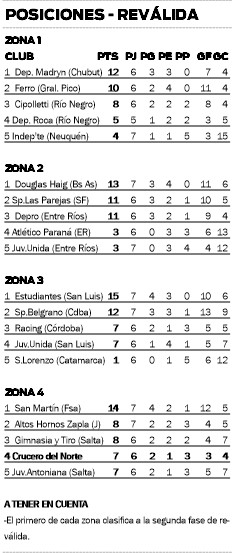 En la tabla de la Zona 4 de la Reválida marcha cuarto con siete puntos, apenas arriba de Juventud Antoniana que, con el mismo puntaje, quedó abajo por diferencia de gol.