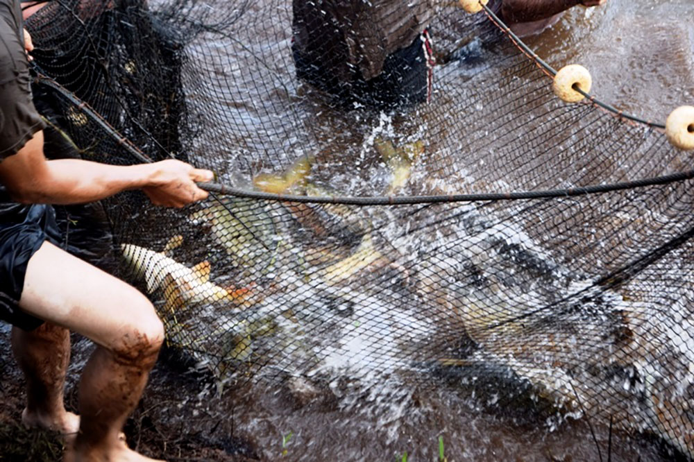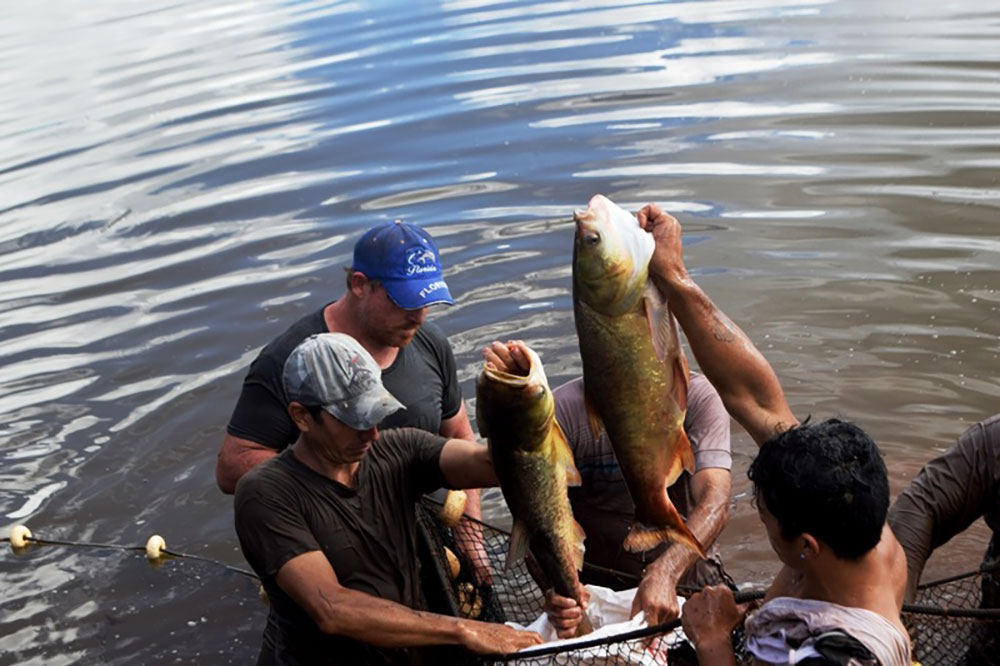 El intendente Juan Carlos Ríos junto a integrantes de la Oficina de Empleo y Producción, productores y vecinos realizaron la primera extracción de peces de los estanques del productor Alfredo Henning. En la misma se pudo observar la calidad de la producción con piezas de doce meses y un pesaje mas que satisfactorio para el colono.