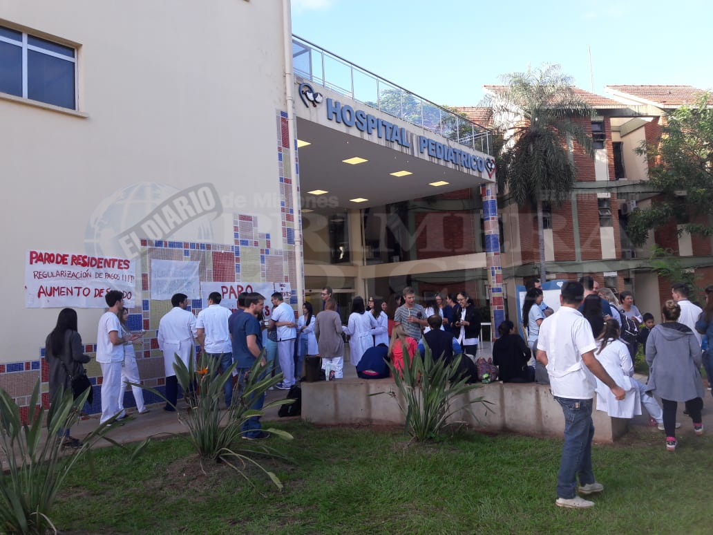 Los médicos residentes de los hospitales de Pediatría, Madariaga, Materno Neonatal, Carrillo y del Samic de Eldorado cumplen el segundo día de paro en reclamo de haberes atrasados, equiparación salarial y aumento del monto que perciben.