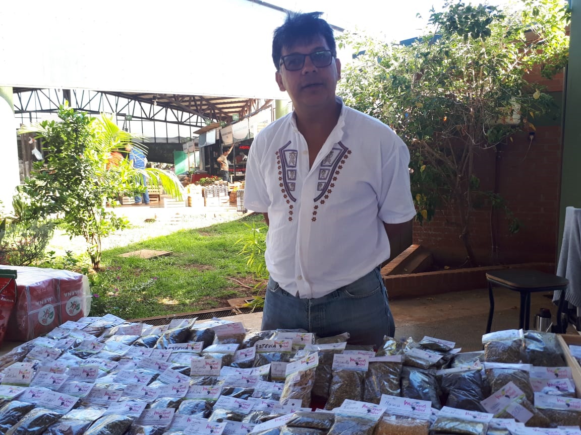 Jorge Antonio Rodríguez es de Campo Grande y se dedica a la producción de hierbas medicinales. En sus cultivos cuenta con stevia, moringa, graviolas, marcela, burrito, caré, y varios condimentos, que una vez que se encuentran a punto, son envasados y comercializados en el Mercado Concentrador Zonal de Posadas, dependiente del Instituto de Fomento Agropecuario e Industrial (IFAI).