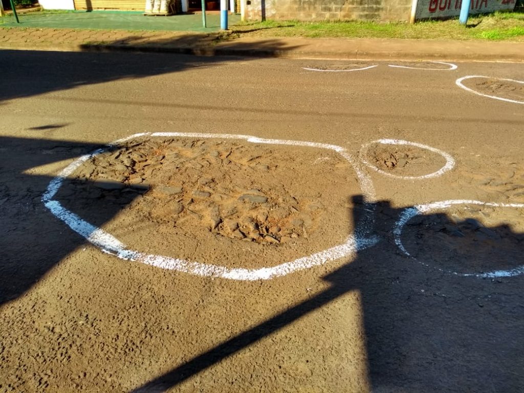 A manera de queja por el pésimo estado de las calles, los vecinos enojados pintaron con cal los numerosos baches existentes sobre avenida Jangadero y República Argentina.