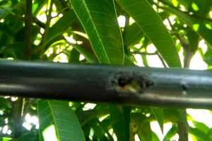 El cable estaba cortado a la altura del kilómetro 27 de la ruta provincial 4 en jurisdicción de Dos Arroyos, en el tramo que atravesaba una planta de mango.