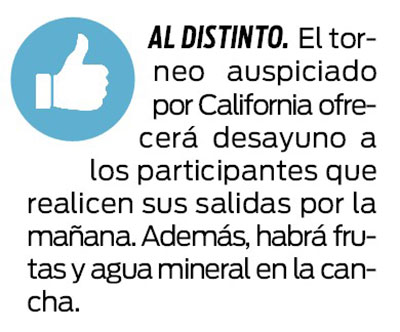 Además, durante la disputa de la vuelta la firma auspiciante ofrecerá frutas y agua mineral en cancha a todos los participantes, al tiempo que a los jugadores que salgan al campo de golf por la mañana, se les servirá el desayuno. En ese sentido, vale aclarar que las salidas matinales será por los hoyos 1 y 10 desde las 8 y hasta las 9.30.