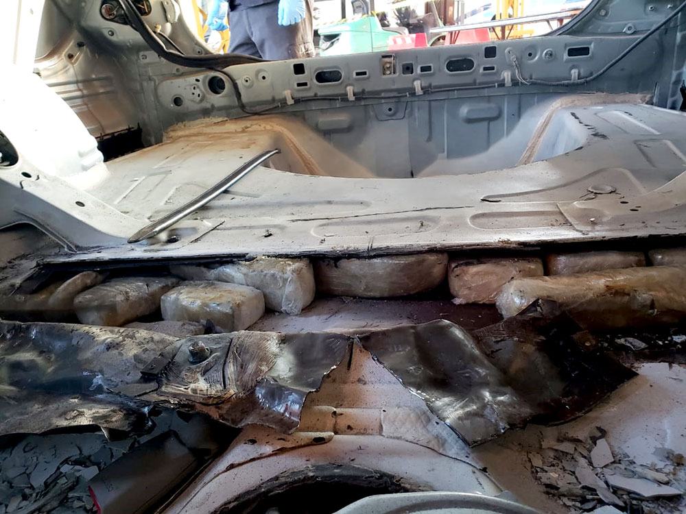 De inmediato el vehículo fue analizado por el escáner de Aduana y debajo del baúl en compartimentos acondicionados sin quitar la rueda de auxilio, fueron hallados los panes de cocaína.
