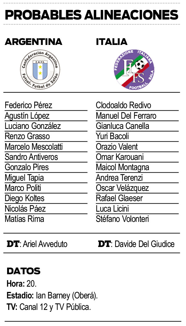 Entre sus filas, Italia cuenta con el paraguayo Oscar Velázquez y con el brasilero Paulo Rafael “Alemao” Glaeser, ambos de importante trayectoria en el salonismo internacional. Por eso, Del Giudice apuesta el todo por el todo de cara al desafío de esta noche ante Argentina: “Este grupo tiene mucha experiencia y la vamos a hacer valer dentro de la cancha”.