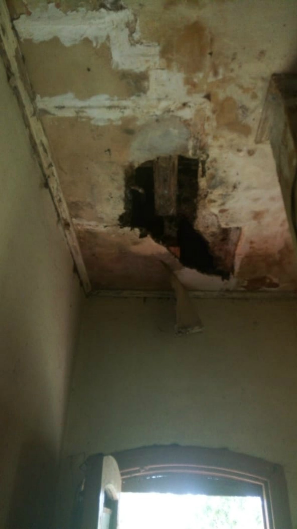 En la larga lista de sectores en mal estado, no puede pasarse por alto que una puerta de la casita, donde van los niños tiene un agujero que está tapado con un plástico. Se encuentra en la parte inferior del terreno donde está la escuela con las paredes totalmente rotas y los techos rajadas. Cuando llueve, toda el agua se viene hacia las cajitas de las conexiones eléctricas del patio, que estas rotas.