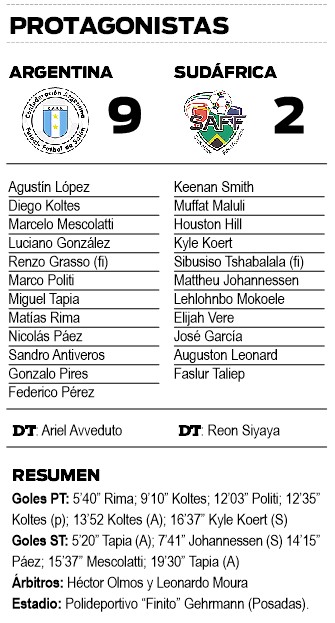 Con la victoria lograda ante los sudafricanos, el conjunto dirigido por Ariel Avveduto se aseguró el primer lugar del grupo y en cuartos de final se cruzará mañana con Francia (segundo de la Zona D).