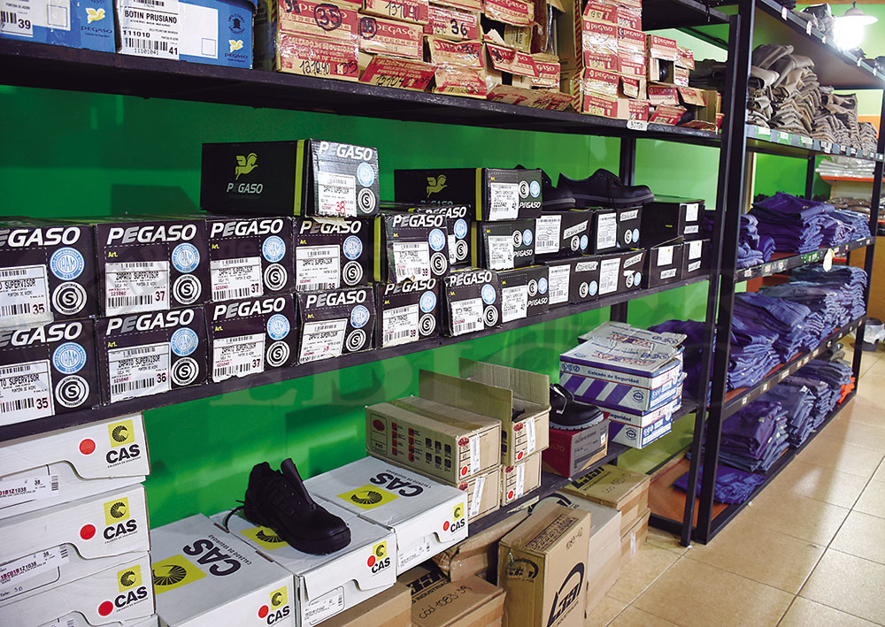 Por si fuera poco, “en el primer piso tenemos todo lo que es indumentaria en seguridad, botines, fajas lumbares, ropa Ombú, una línea económica de gabardina que llevan mucho los chicos para las escuelas técnicas, cascos, guantes y todo aquello que le garantiza al operario de nuestras máquinas cierta seguridad en el uso de la herramienta”.