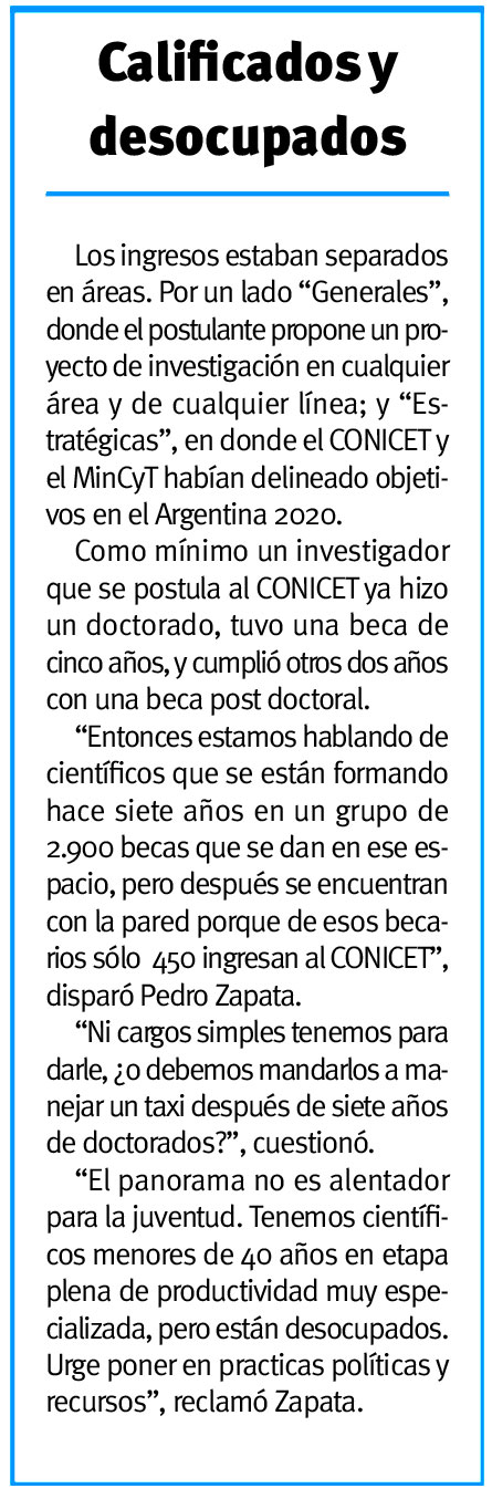 “Uno piensa lo siguiente: si el problema del CONICET, porque tiene un problema, es la distribución territorial de sus investigadores, hay que tomar cartas en el asunto. Y si bien la planificación que hicieron no está mal, después hay que comprometerse con las evaluaciones, porque al final, de esos 450 que ingresaron, la gran mayoría, otra vez, son de Buenos Aires y conurbano”, apuntó.