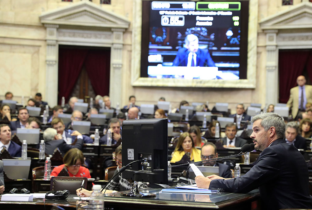 En respuesta a la bancada del FpV, que recibió al ministro con carteles que llevaban la leyenda “#BastaDeMentir”, Peña consideró que tanto el índice de pobreza como la tasa de inflación se mantienen “igual de altas” que cuando Cambiemos desembarcó en el Gobierno en diciembre del 2015.
