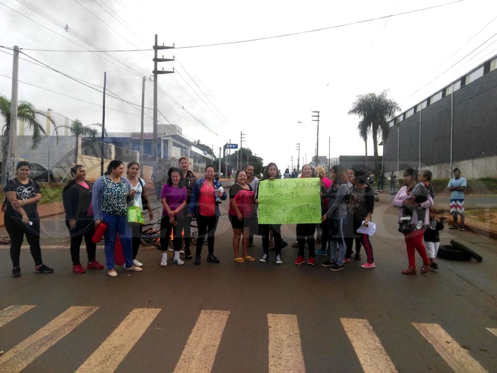 “Con la jornada completa no se metan”, fue la consigna de la protesta de un grupo de 30 personas que interrumpieron el tránsito en una de las arterias más transitadas de Posadas, donde reclamaron a las autoridades provinciales que resuelvan la problemática de la alimentación de los niños.