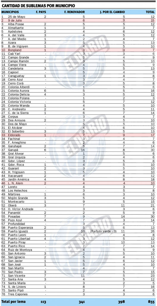 Los cuatro que no fueron aprobados son del Frente Juntos por el Cambio de las localidades de 9 de Julio, Bonpland, Eldorado y Leandro N. Alem.
