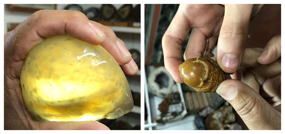 Las piedras trabajadas, cortadas, pulidas y ornamentadas, pueden ser apreciadas por el visitante, así como aquellas que se encuentran en su estado natural. Asombroso es apreciar aquellas que en su interior contienen agua, cuyo sonido es perceptible al agitar levemente la piedra.