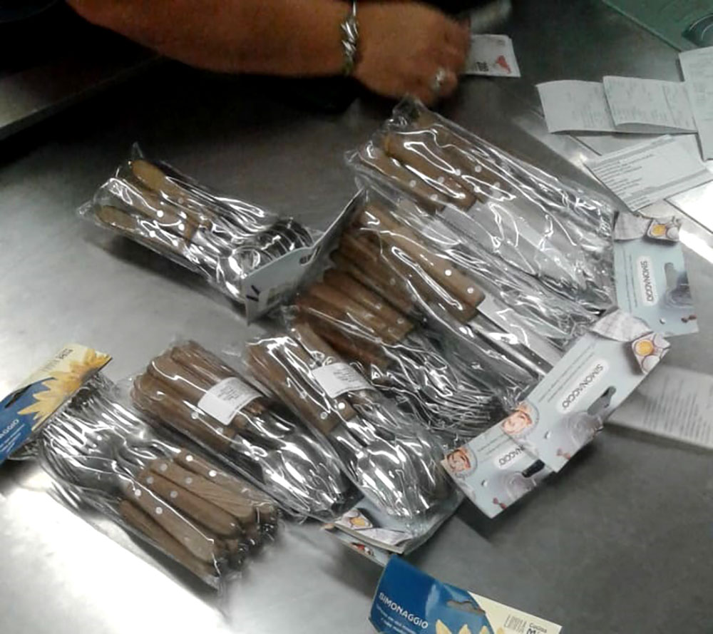 En efecto, en su poder tenían 10 packs de cubiertos de cocina x 12 unidades cada uno. Estos eran tres paquetes de tenedores, tres de cuchillos y cuatro de cucharas.