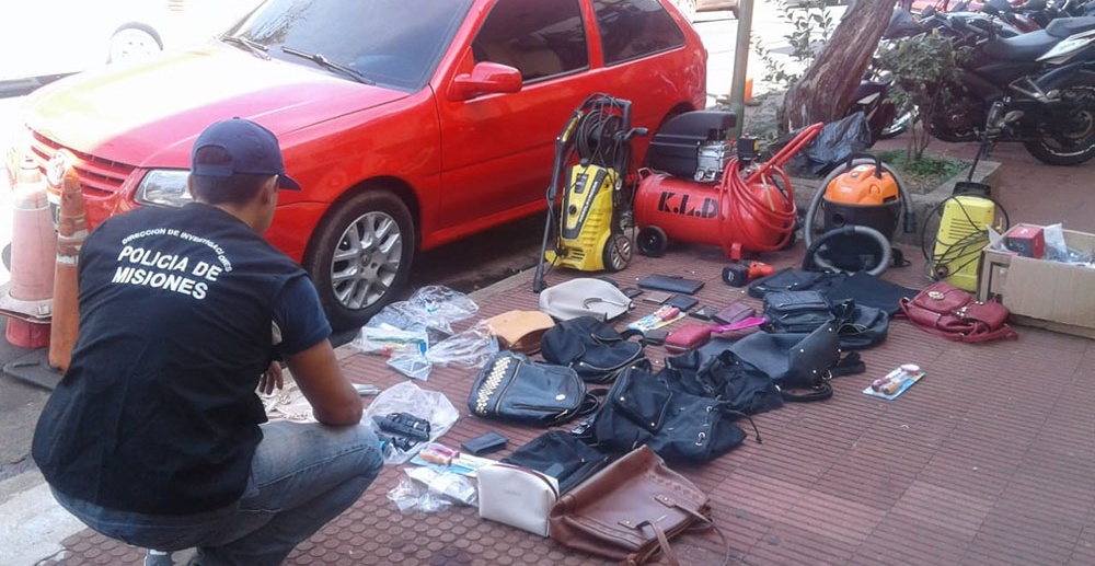 Posteriormente por orden del Juzgado de Instrucción N° 3, se allanó la vivienda del hombre, en el barrio Los Lapachos, donde se procedió al secuestro de una cámara fotográfica, un macro pin, cinco linternas, quince carteras de distintas marcas, diez billeteras, una aspiradora, un compresor y una caja de repuestos de motocicleta.