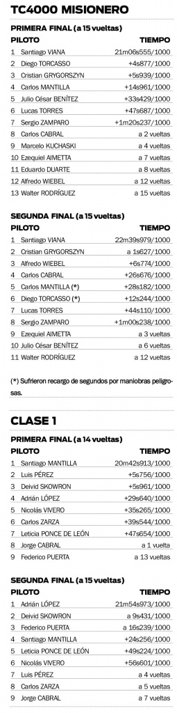 La última final del TC4000 no tuvo mayores sorpresas. Grygorszyn (Chevrolet 400) largó en punta y la lucha se centró con Wiebel hecho un avión, tras superar al campeón, el “Indio” Mantilla. Hubo un roce entre ambos, polémico, del que Wiebel salió perjudicado.