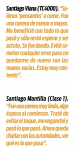 En tanto, en la TP Clase 1, la alegría se dividió en dos, ya que la primera final quedó en manos de Santiago Mantilla, mientras que la segunda fue para el correntino Adrián López, dueño de la clasificación del último sábado.