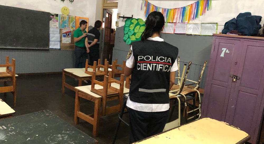 El Tribunal a pleno, compuesto por los jueces María Teresa Ramos, Atilio León y Lida Gallardo, se constituyó en la escuela -emplazada sobre la avenida San Martín de Eldorado- y realizó la inspección ocular. También estuvo presente la defensa del imputado, el abogado Claudio Paniagua, y el fiscal Federico Rodríguez.