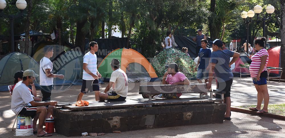 La protesta en la plaza 9 de Julio la lleva adelante casi un centenar de personas (grandes y chicos) que el martes pasado fuera desalojado por la intrusión en terrenos de la Zona Oeste de la capital provincial.