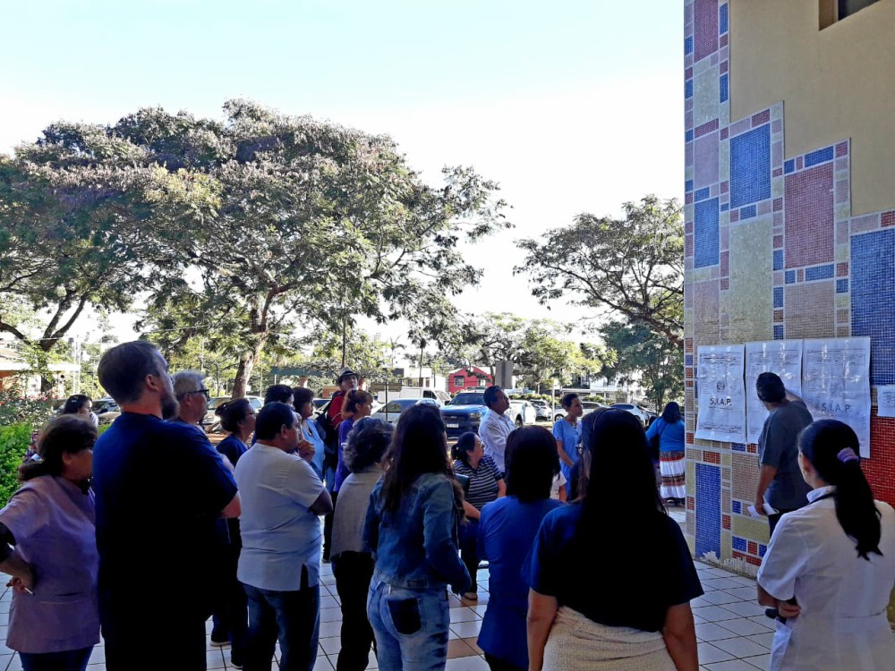 En el transcurso de la mañana de este miércoles, los trabajadores médicos, y técnicos bioquímicos, kinesiólogos, y administrativos se reunieron para comparar recibos de sueldos de contratados por la Fundación Parque de la Salud y del personal de planta permanente del Ministerio de Salud, personal del IPSM y otras reparticiones.