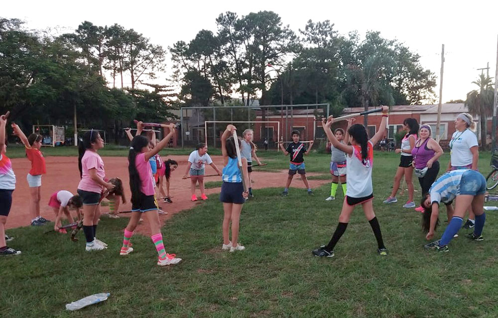 “Durante las clases realizamos tareas de precalentamiento, les enseñamos las técnicas de juego y luego concretamos prácticas en la cancha. Desde nuestro lugar buscamos generar el hábito de la actividad física y que todos tomen conciencia de la importancia de mantener el cuerpo en movimiento para evitar enfermedades y problemas futuros”, expresó Victoria Salles, profesora de la Escuela Municipal de Hockey del barrio San Miguel.