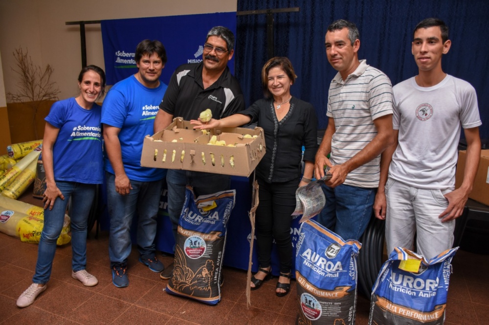Además, se entregaron kits completos para el armado de invernaderos, bombas y tanques de agua, sistemas y programadores de riego a productores de la Cooperativa Alto Uruguay (CAUL), de Paraje Libertad y Paraje El Progreso.