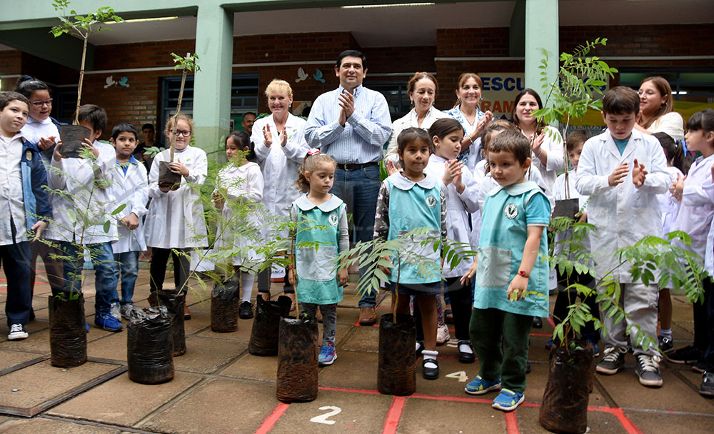 La actividad realizada hoy por la mañana fue encabezada por el alcalde capitalino, Joaquín Losada, quien destacó que el desafío “es apostar a nuestros chicos, que son el futuro, pero hacer la construcción en el presente. Plantar un árbol hoy es una obligación porque si lo hacen cuando son grandes la sombra tampoco estará ahí. El año pasado plantamos 10 mil árboles y ahora redoblamos esa apuesta. El mayor desafío social no es plantar sino cuidar y mantenerlos para que haya una sombra de acá a diez o quince años”.