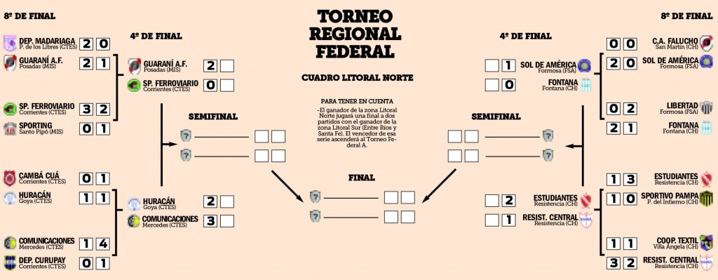 Por otra parte, de la serie entre Huracán de Goya y Comunicaciones de Mercedes, saldrá el rival de la serie entre Guaraní y Ferroviario. En la ida ganó Comunicaciones 3-2. La revancha se jugará en Goya, el domingo a las 16.