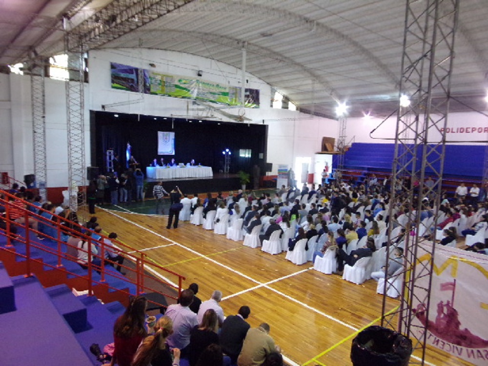 Durante su presentación formal, que se realizó en el Polideportivo Municipal de San Vicente, se entregaron de manera simbólica las libretas de alumnos regular y las becas de estudio, junto con el apoyo para alimentación de a los nuevos ingresantes a la vida académica. De este acto participaron alumnos, autoridades de la Universidad, empresarios, autoridades locales, provinciales y nacionales.