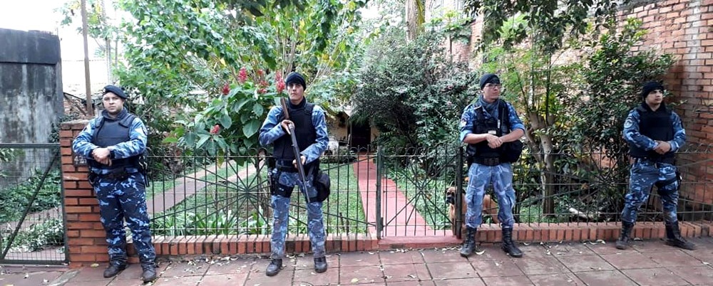 Recorrieron durante la noche y la mañana el sector hasta arribar a una propiedad a cuatro kilómetros, donde se observó una vieja construcción, un galpón y un corral de madera, donde se secuestró un block de motor Mercedes Benz con numeración adulterada, también detectaron huellas de ruedas pantaneras recientes y que podrían corresponder al transporte que tomaron los asaltantes, una camioneta tipo Unimog la que luego ubicaron en la calle Juan XXIII de Puerto Rico.