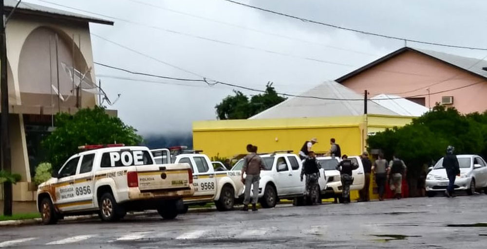 Los delincuentes atacaron una sucursal del Banco do Brasil en Porto Xavier, a la que ingresaron disparando contra los ventanales del banco.