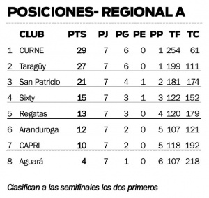 En los restantes partidos jugados el sábado, Taragüy le ganó de visitante a CURNE por 6-3, San Patricio liquidó a Regatas 29-3 y Sixty se impuso 7-0 a Aranduroga.
