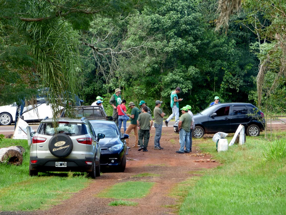 Sin cortar el tránsito, los agentes de la Selva Paranaense piden a los rodados que detengan la marcha y explican a sus ocupantes la situación económica que enfrentan.