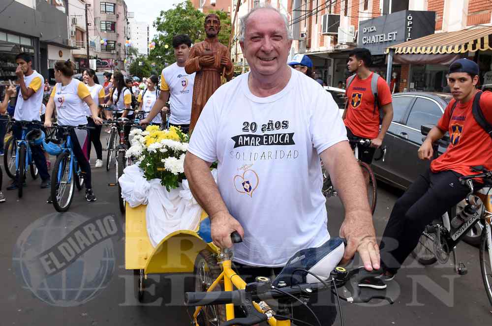 Música, animación, el colorido de las camisetas que distinguían a los alumnos del Profesorado de Educación Física del Montoya, docentes, integrantes de la asociación de padres, alumnos y la imagen de San Roque González al frente del pelotón que comenzó a moverse lentamente luego de la tradicional bendición.