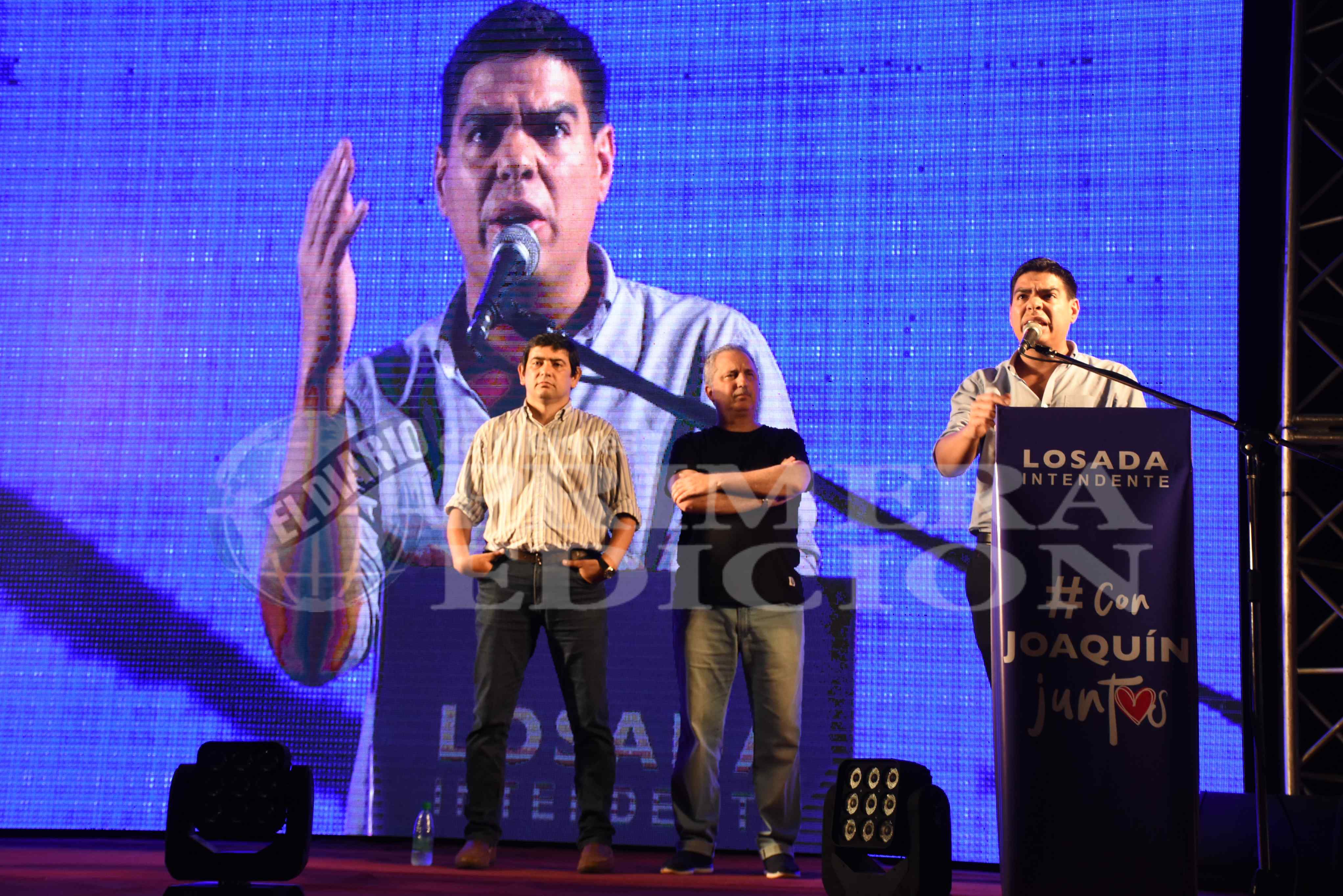 Pocos minutos después de las 19, ingresaron al escenario del anfiteatro todos los integrantes del sublema, seguidos de Losada, Meza y el gobernador de la provincia Hugo Passalacqua. Fue encargado de abrir las alocuciones, empezó agradeciendo la invitación y recordó una charla previa con el intendente mantenida mientras subían las escaleras. “Recién le dije a Joaquín que veo más gente que hace cuatro años atrás”. Y siguió: “solamente vine a decirles un par de cosas muy simples, sencillas. Estoy orgulloso de quienes son la piedra fundamental de la renovación: ustedes”.